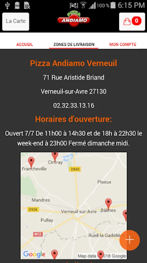 The Android Pizza Andiamo Verneuil app allows you to order online or by phone through your app. You can consult our menu and choose your products.