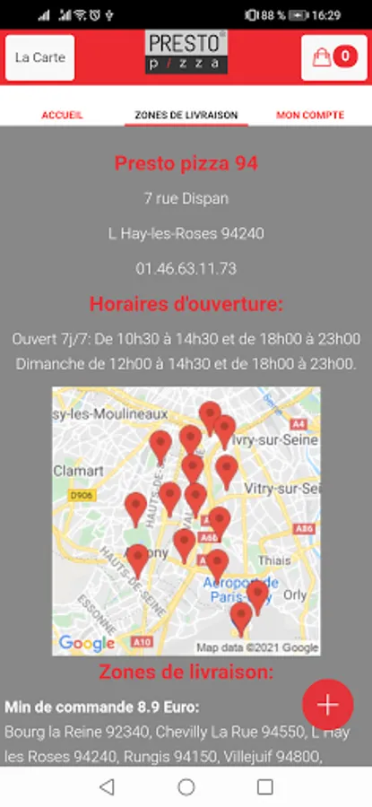 The Presto pizza 94 Android app allows you to order online or by phone through your app. You can consult our menu and choose your products.