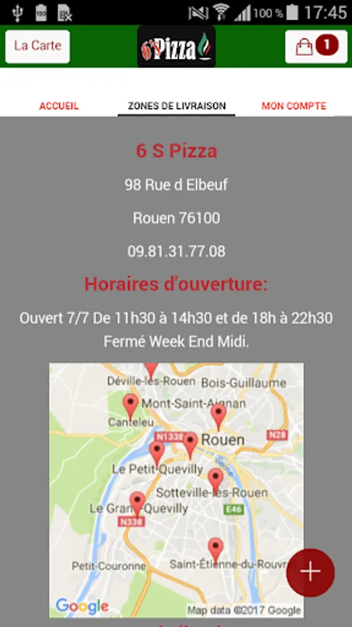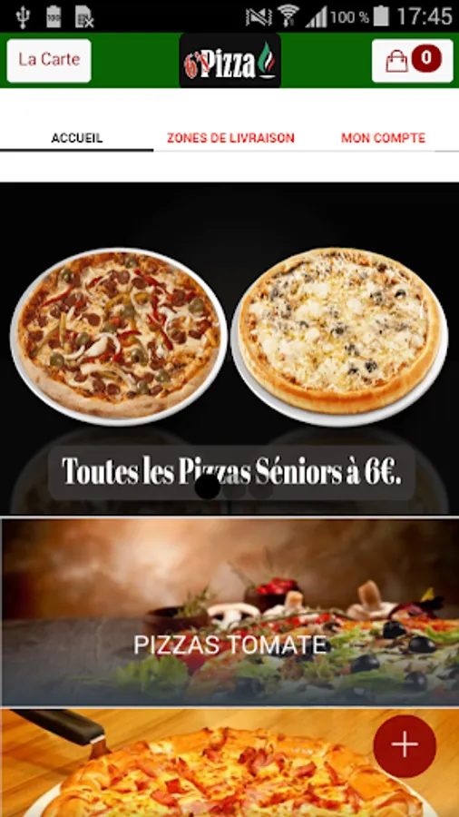 The 6 S Pizza Android app lets you order online or by phone via your application. You can consult our map and choose your products.
