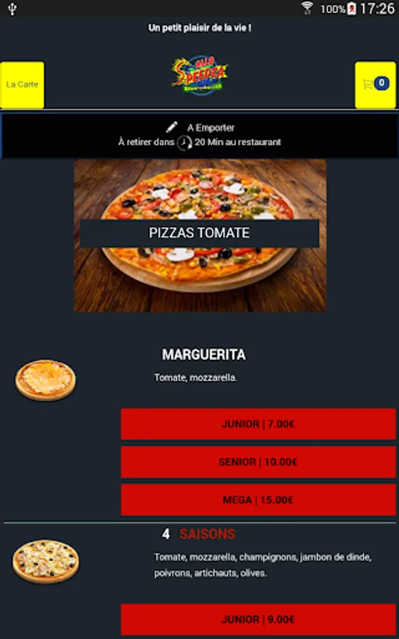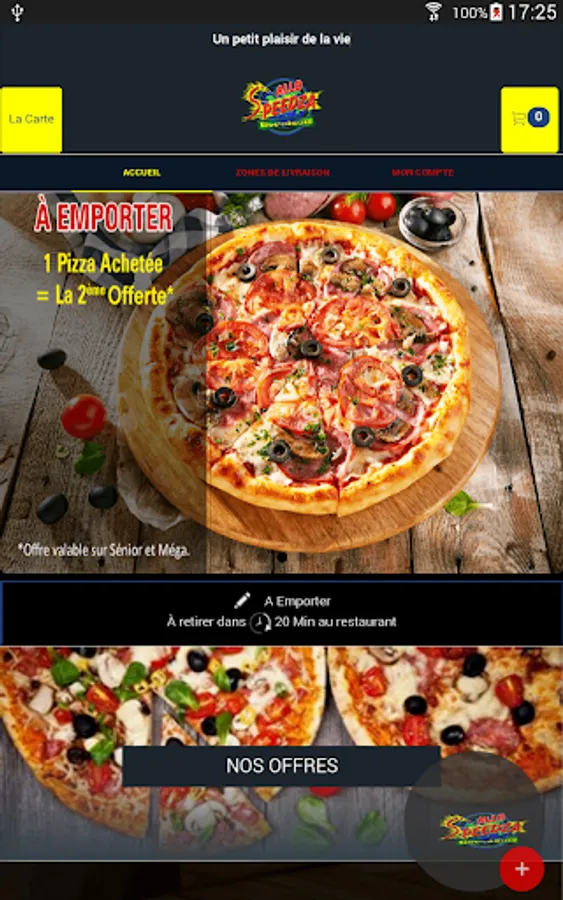 The ALLO SPEEDZA Android application allows you to order online or by phone via your application. You can consult our menu and choose your products.