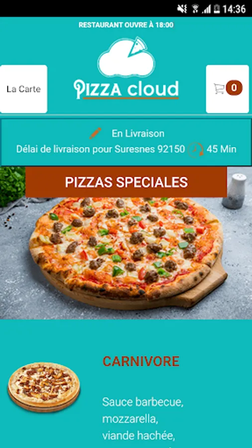 The Android Pizza Cloud app lets you order online or over the phone through your app. You can consult our menu and choose your products.