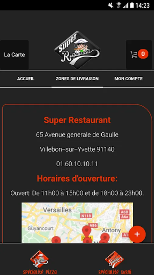 The Super Restaurant Android app allows you to order online or by phone through your app. You can consult our menu and choose your products.