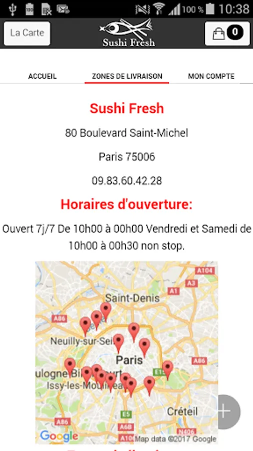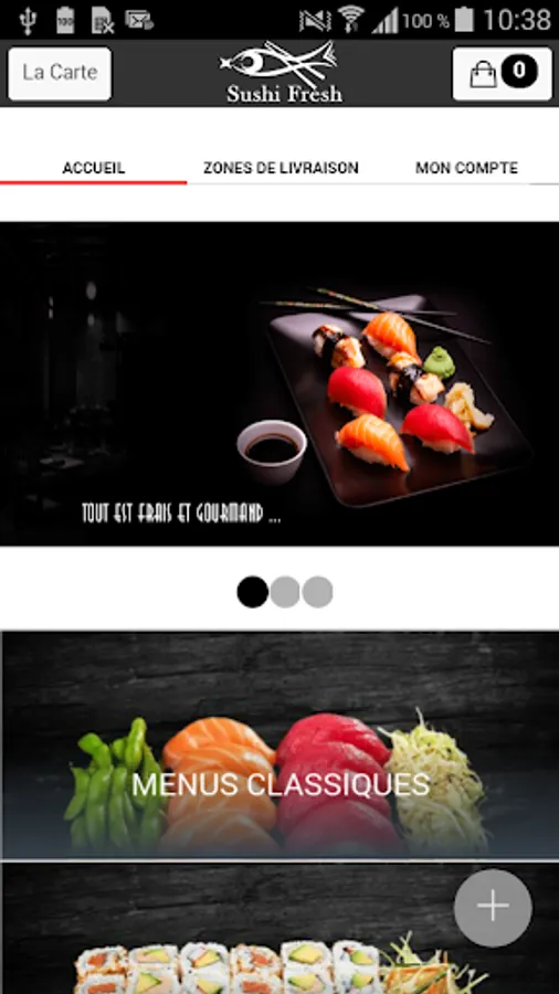 The Sushi Fresh Android app lets you order online or by phone through your application. You can consult our map and select your products.