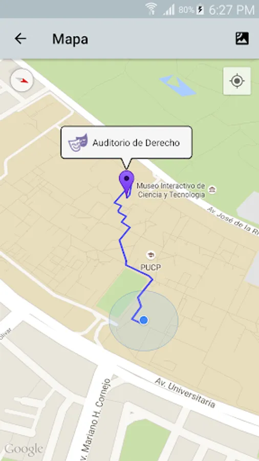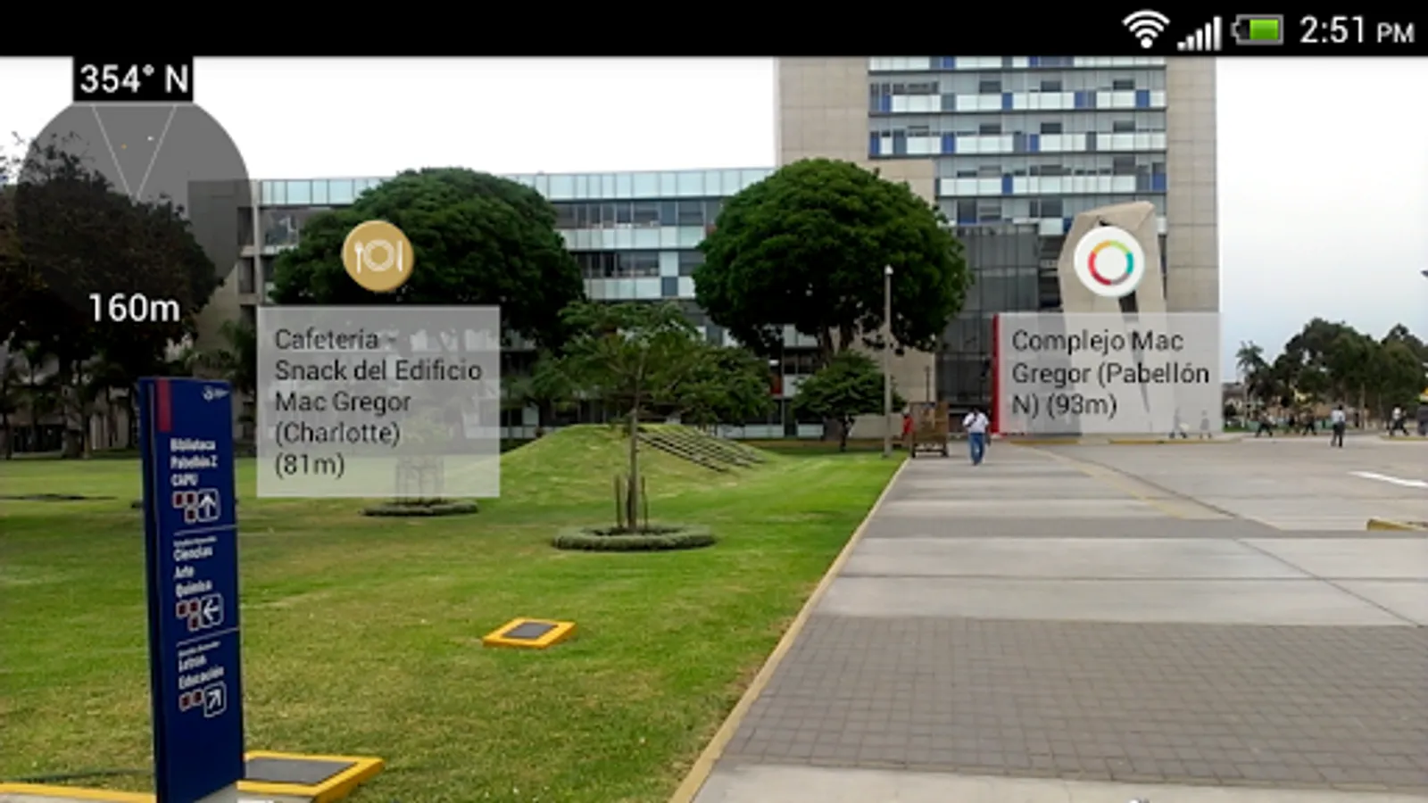 - Browse augmented reality within the PUCP or see places on a map, you can even see the route to your destination.