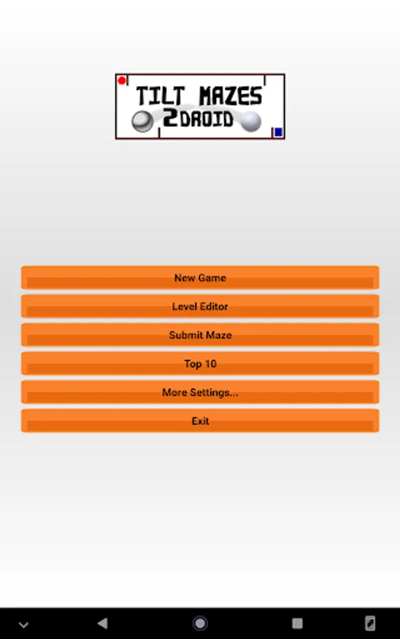 - Random Game: Random mode provides the Tilt Mazes 2Droid of unlimited duration. Every time you start a game in this mode, the application displays a randomly generated labyrinth.
