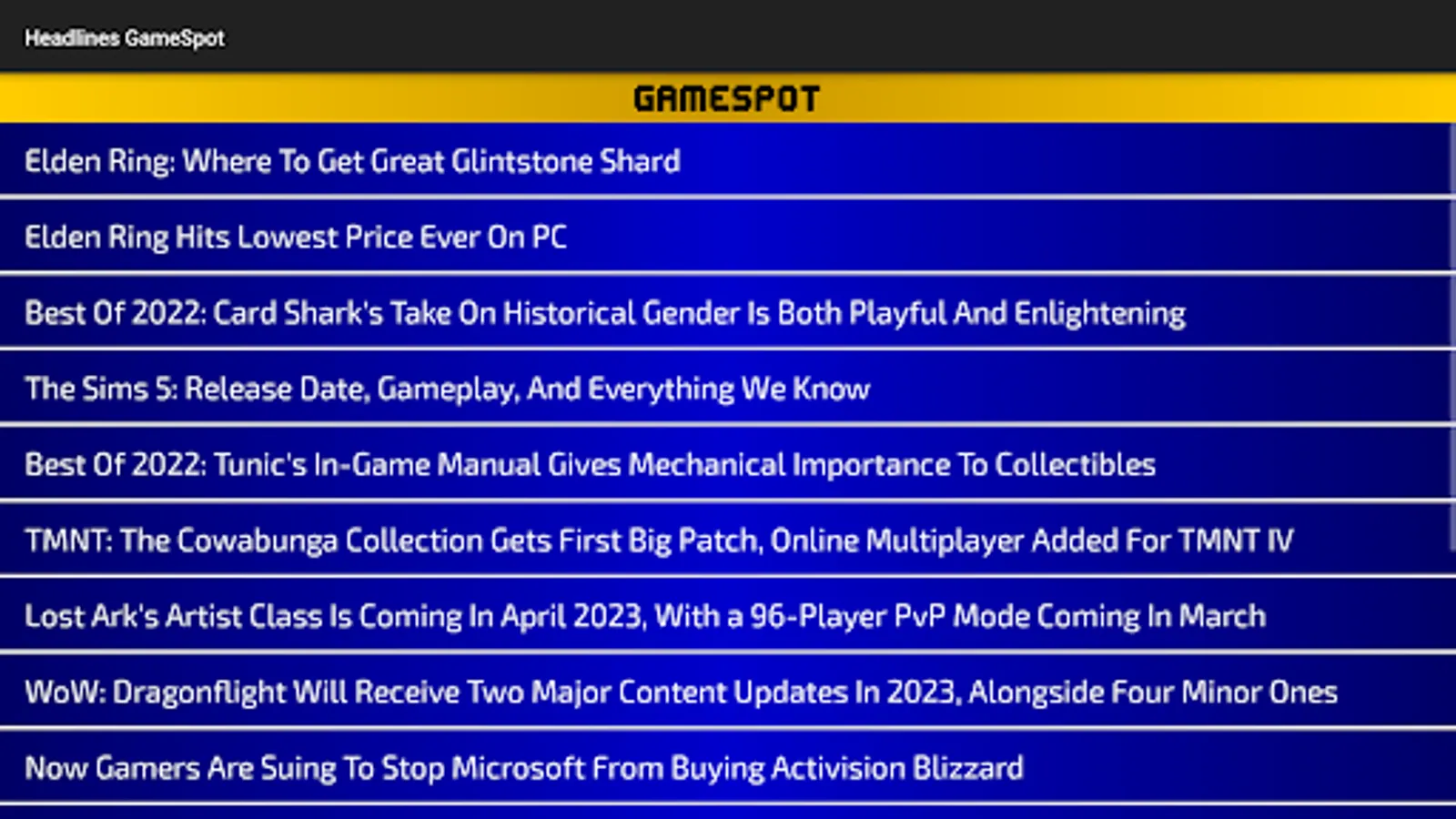 World of Video Games News is a news reader only for video games. With this application you can be fully informed of all industry news. From the same application, you will have access to all news and articles published in the most important digital media. News from all platforms: Xbox Series, Playstation, Nintendo Switch, Steam Deck, PC and any platform you can imagine. And all conventions E3, Gamescom, Tokyo Game Show, Games Developer Conference, GDC, PAX and The Game Awards.