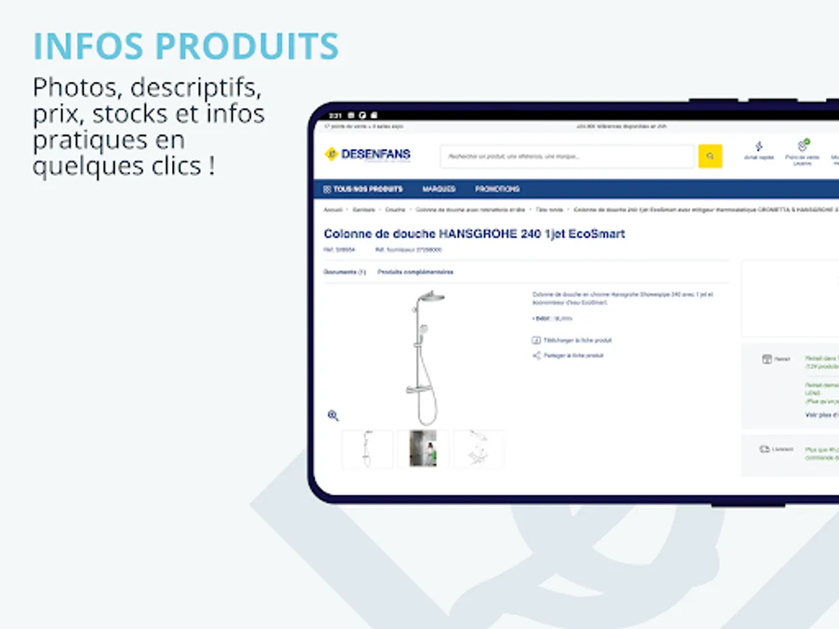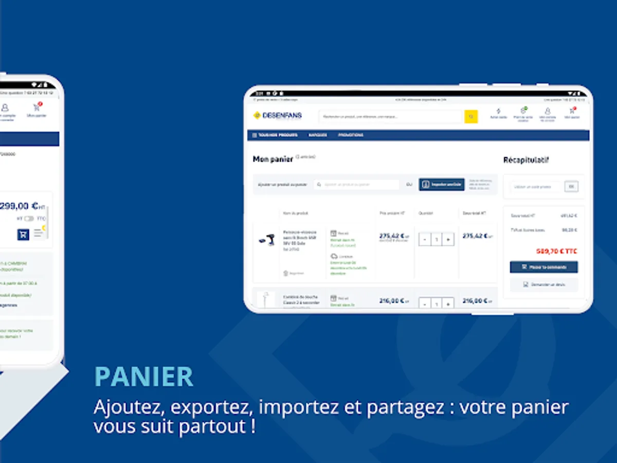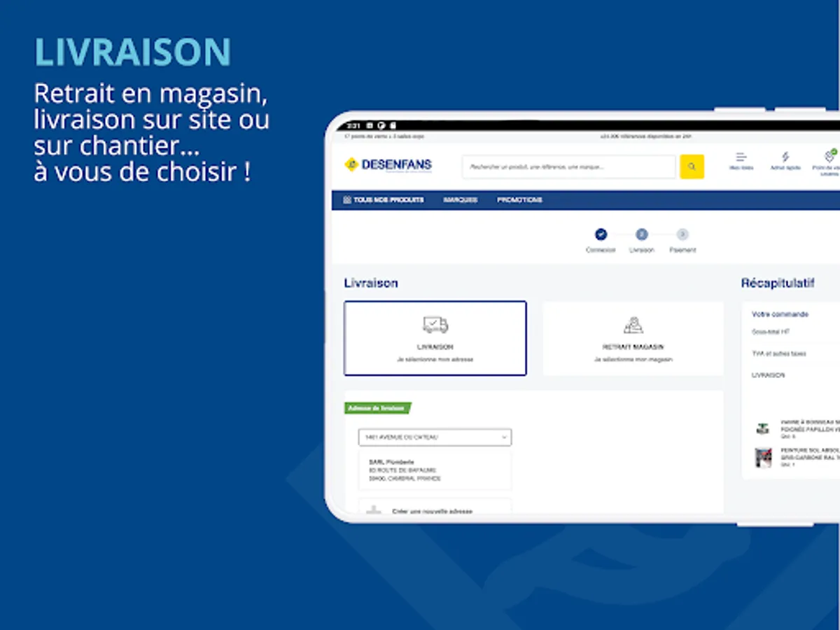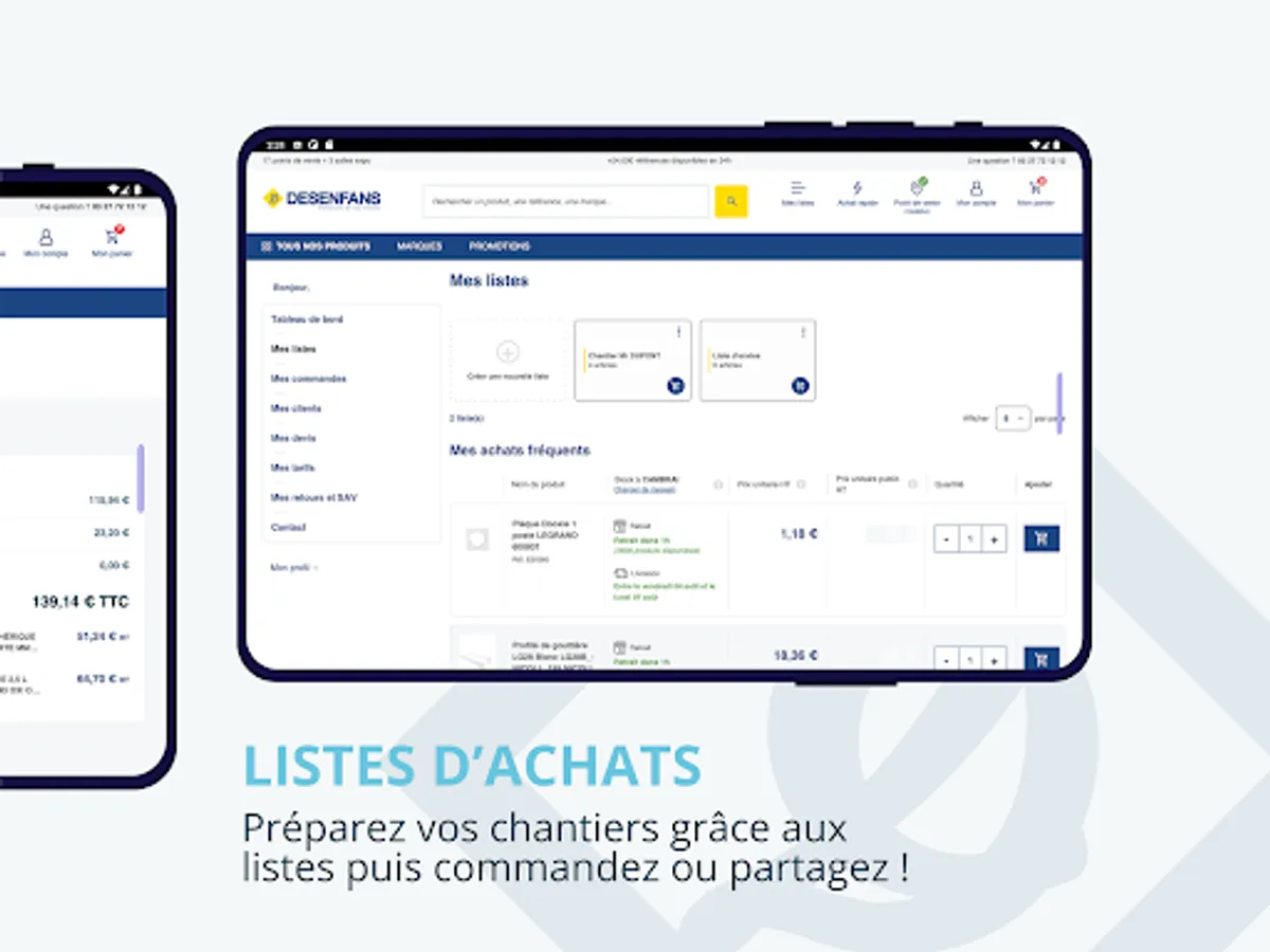 With the Desenfans application, make all your purchases in heating, plumbing, sanitary, electricity, tools, roofing, hardware and building for all your sites.