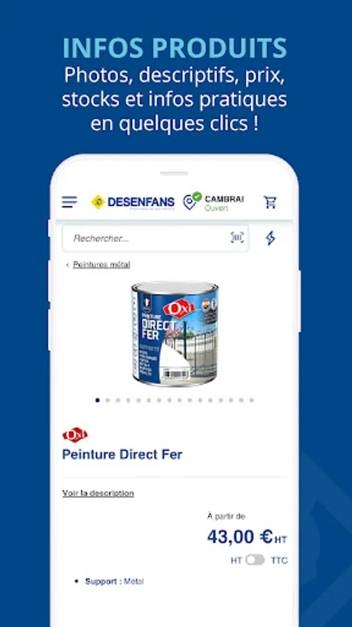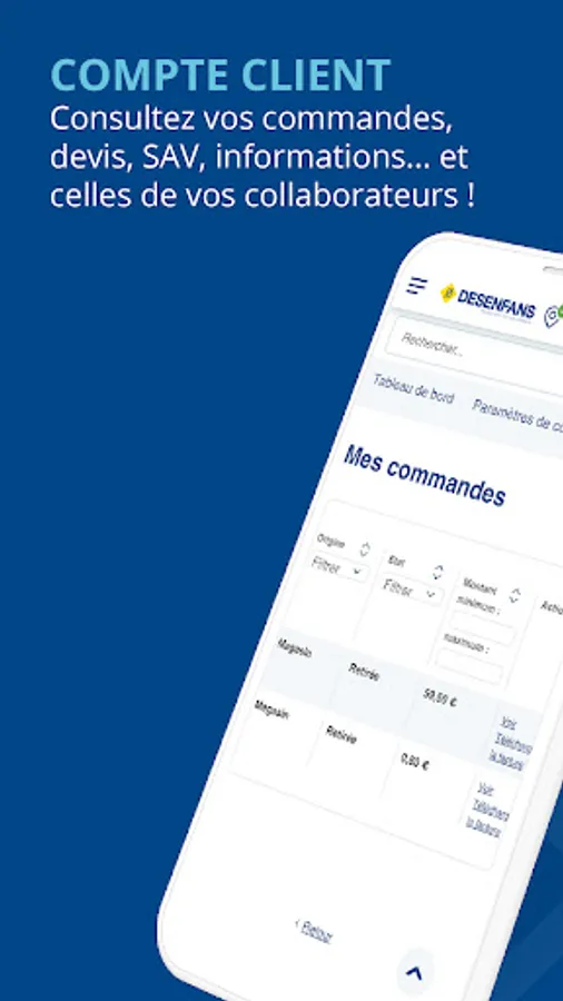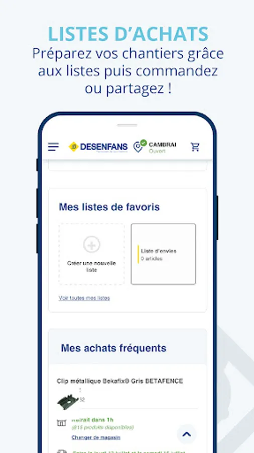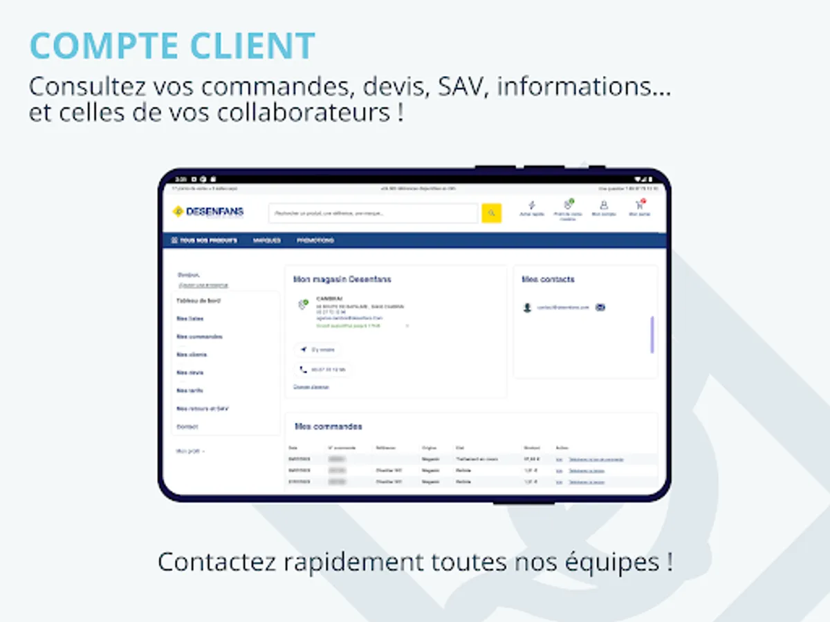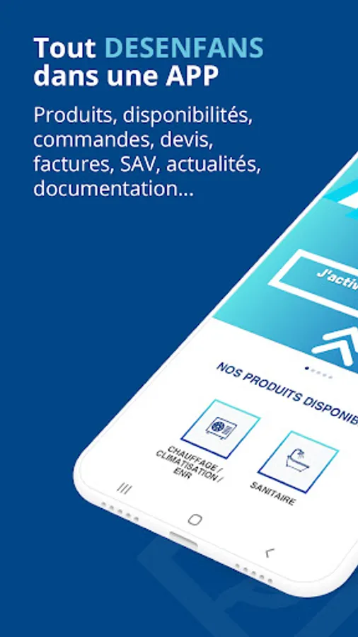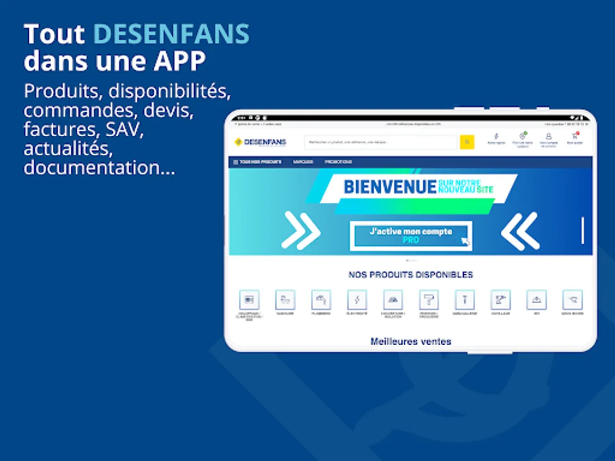 With the Desenfans application, make all your purchases in heating, plumbing, sanitary, electricity, tools, roofing, hardware and building for all your sites.