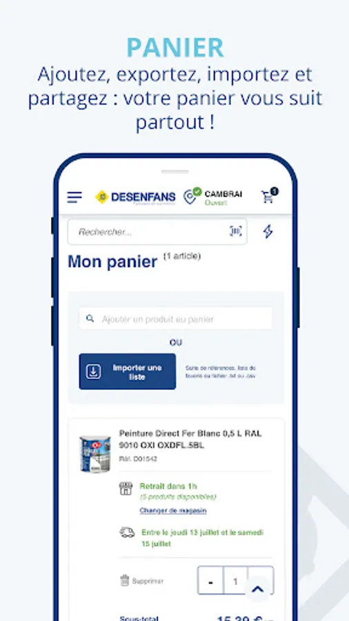 Save time and order on the application in a few clicks our more than 24,000 references available and take advantage of the Top Chrono withdrawal in 2 hours and the delivery service within 24 hours!