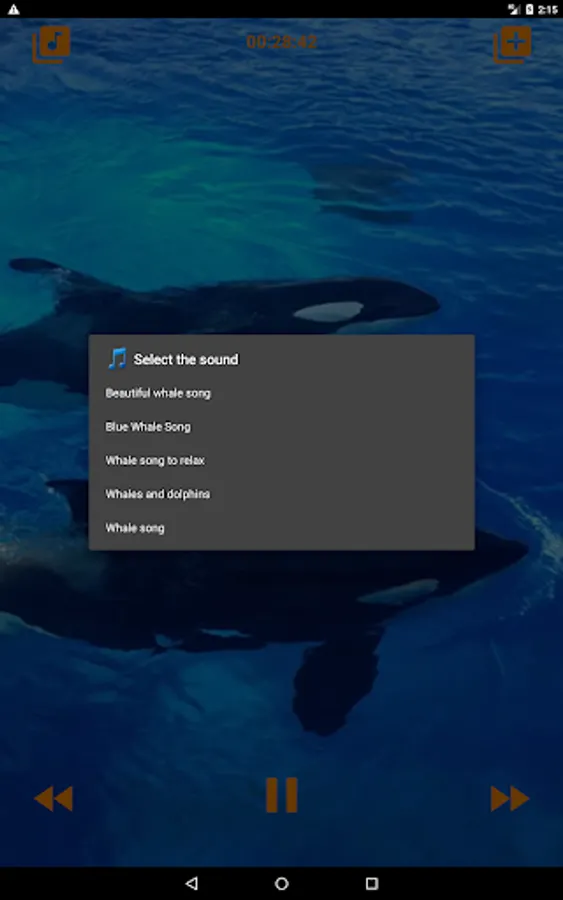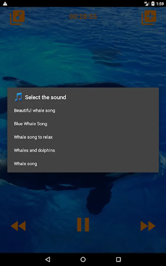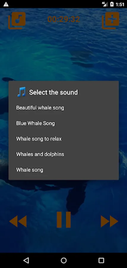 You like Whales? Then you will like this app. You have several choices of songs of Whales that you can use to sleep better and faster. You can use the songs of Whales to relax when you're stressed. You can use to put your babe to sleep. The songs are soft ideal for the kids and adults to sleep faster.