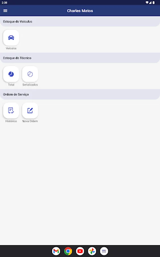 Application to query and manage the consumption of materials available in vehicle stock and consult the technical stock of materials that are linked to the technician, as well as indicate or search for the amount of material used in a service order.
