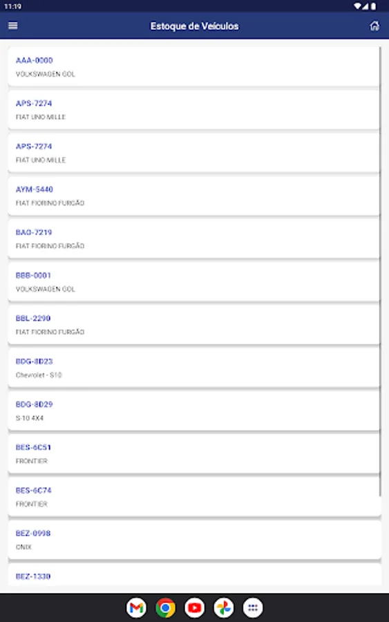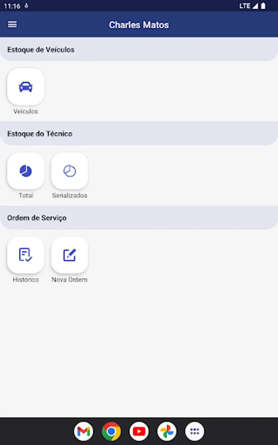 Aplicativo para consultar e gerenciar o consumo dos materiais disponíveis em estoque de veículos e consultar o estoque técnico de materiais que estão atrelados ao técnico, bem como indicar ou pesquisar a quantidade de material utilizado em uma ordem de serviço.