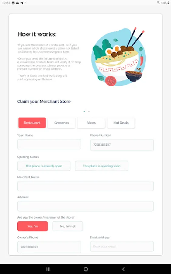 Increase your business revenues and reach out to much more customers in the Canary Islands as an official partner of the DESEOS APP- Fuerteventura's local delivery and professional services mobile application for tourists and residents alike. With our newly updated software, businesses can manage and plan their growth and inventory and take the plunge from traditional to digital sales in the most effortless way. Here are some of the features that will make reaching new clients an easy peasy.