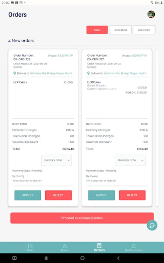 Get notified with the Deseos New Order Notification on your Deseos Business tablet, and easily view order details and effortlessly accept, reject or monitor the delivery.