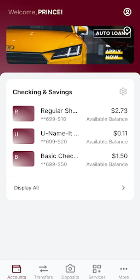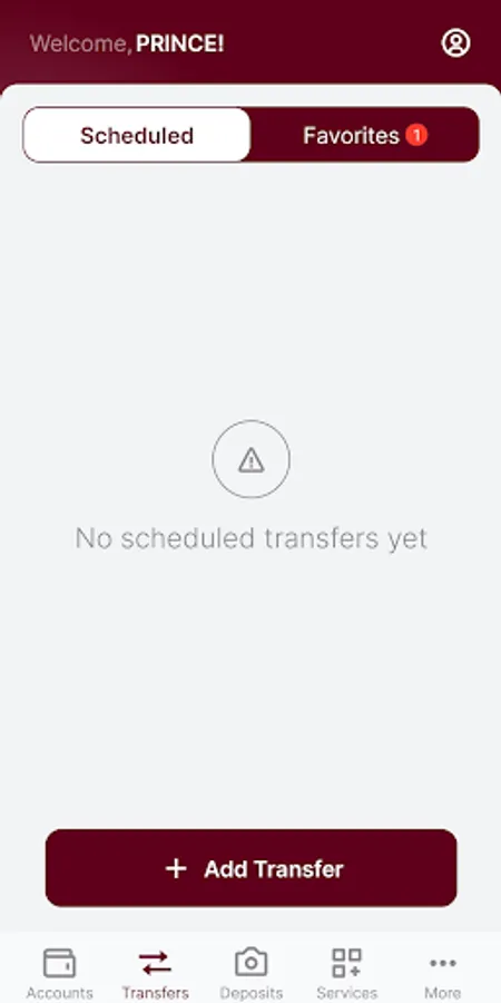 · Transfers: account to account, scheduled, pending ACH and check withdrawal transfers are available