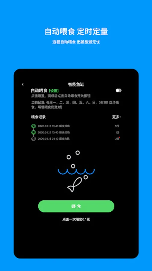 Remote automatic feeding can be enabled through the APP, and the feeding time, feeding amount, and number of feedings can be set. You can check the feeding record in time, so you don't have to worry about feeding problems even if you are traveling for business.