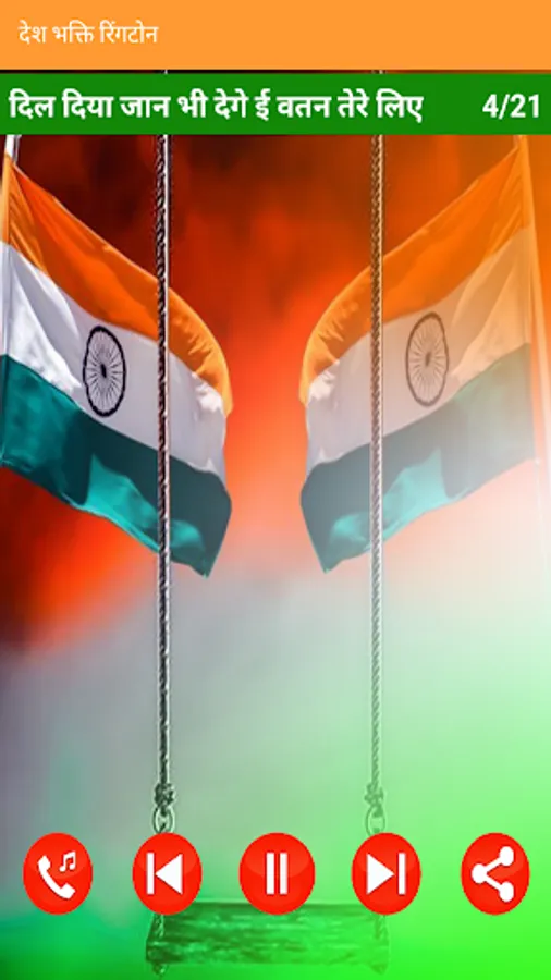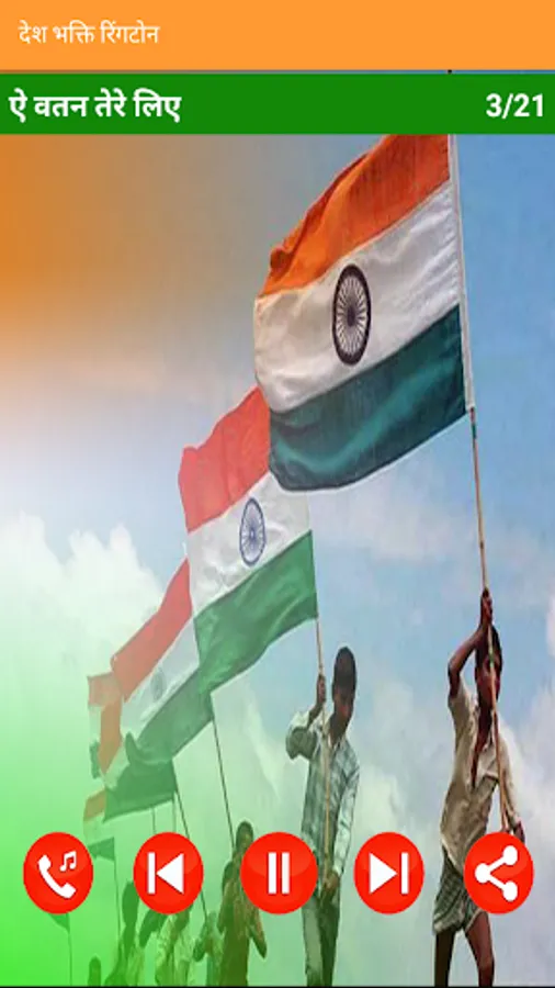 Celebrate national festivals like independence day or republic Day with amazing Desh Bhakti Ringtone( देश भक्ति रिंगटोन ) app. Patriotic Songs Collection Independence Day Songs, Desh Bhakti Songs etc.