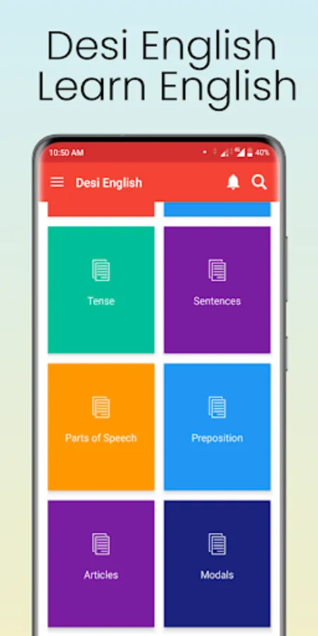 Learn basic English grammar to avoid mistakes when you speak. From This English-speaking course in Hindi, you can learn English tenses, passive voice, and much more. Learn English Conversation through Desi English App. This app provides every advanced method for Hindi Speakers to learn English as a second language.
