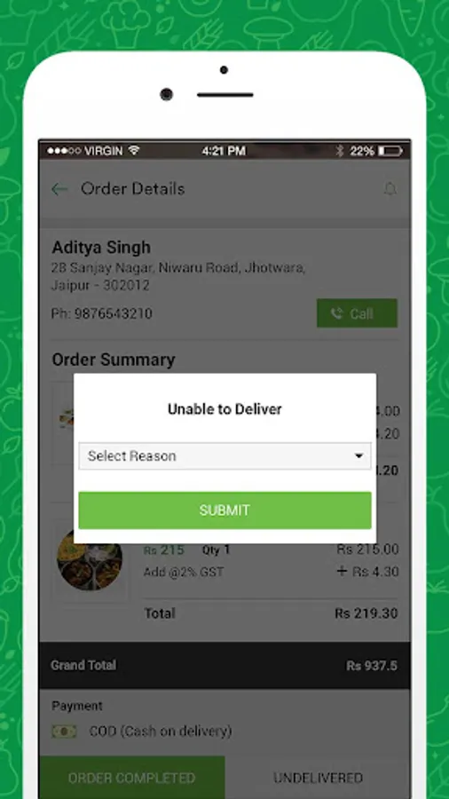 As soon as a customer places their food order, a notification is sent to the driver on his application. Details of the order like customer name, food item, address, route, etc. can be seen on the app. The driver has to pick up the order from Desi Brigade’s food facility, restaurant or kiosk, and then has to head for the given address. Customers will be able to track their order via their app, while the restaurant administration would be able to keep an eye over the route taken by the driver. In the end, billing details would be made visible on the driver’s app.