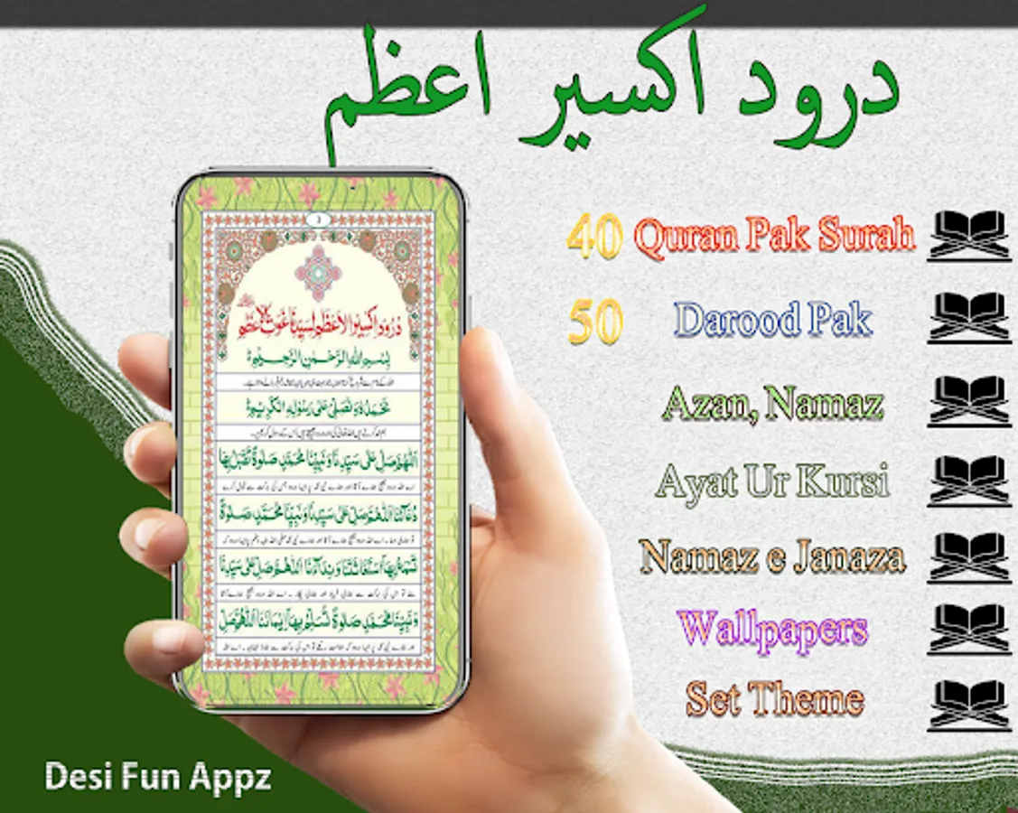 Darood Aksir e Azam is offline Islamic application for all android mobile users. Dua Ahad Nama is the collection of different precious Islamic darood like Darood e Ibarahmi, Darood e Taj, Darood e mahi, Darood e Ghoisa, Darood e Akbar, Darood e Tanjeena etc. Darood Akseer e Azam also contain more than 50 Darood Pak. This is one the best islamic app with very simple layout. Darood Tanjeena and all other darood is most precious and beloved wazifa of all the true lovers of our beloved Prophet.