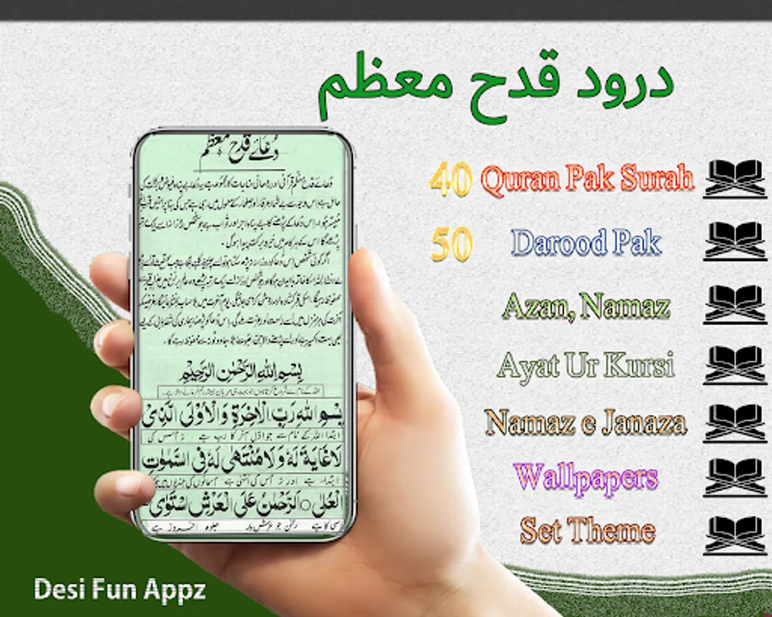 Darood e Qaddah Mozzam is offline Islamic application for all android mobile users. Darood e Qadda Mozzam is the collection of different precious Islamic darood like Darood e Ibarahmi, Darood e Taj, Darood e mahi, Darood e Ghoisa, Darood e Akbar, Darood e Tanjeena etc. It also contain more than 50 Darood Pak. This is one the best islamic app with very simple layout. Darood Tanjeena and all other darood is most precious and beloved wazifa of all the true lovers of our beloved Prophet