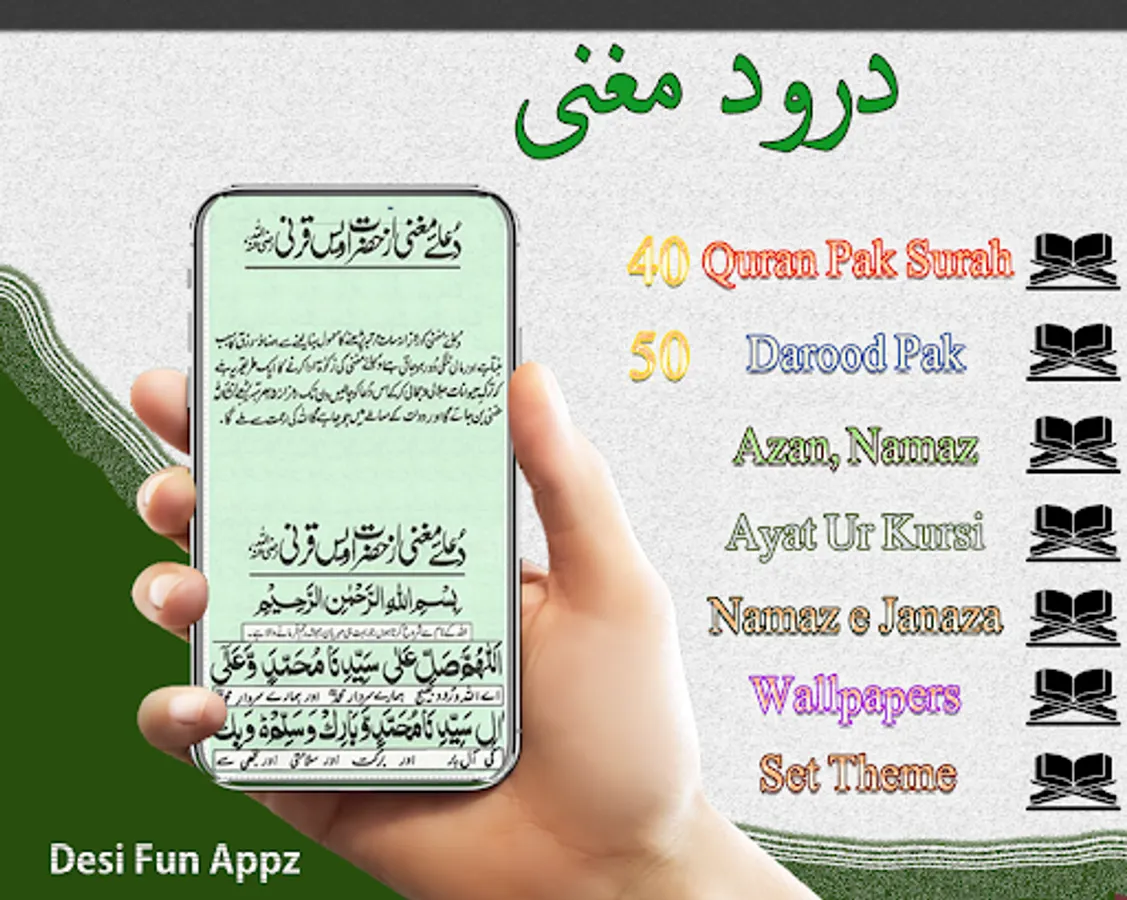 Islamic Dua Maghni is offline Islamic application for all android mobile users. Islamic Dua Maghni is the collection of different precious Islamic darood like Darood e Ibarahmi, Darood e Taj, Darood e mahi, Darood e Ghoisa, Darood e Akbar, Darood e Tanjeena etc. It also contain more than 50 Darood Pak. This is one the best islamic app with very simple layout. Darood Tanjeena and all other darood is most precious and beloved wazifa of all the true lovers of our beloved Prophet