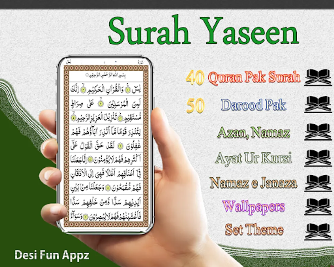 Surah e Yaseen (Quran Pak Heart) is offline Islamic application for all android mobile users. Surah e Yasin is the collection of different precious Islamic darood like Darood e Ibarahmi, Darood e Taj, Darood e mahi, Darood e Ghoisa, Darood e Akbar, Darood e Tanjeena etc. Surah e Yasin islamic app also contain more than 50 Darood Pak. This is one the best islamic app with very simple layout. Darood Tanjeena and all other darood is most precious and beloved wazifa of all the true lovers of our beloved Prophet.