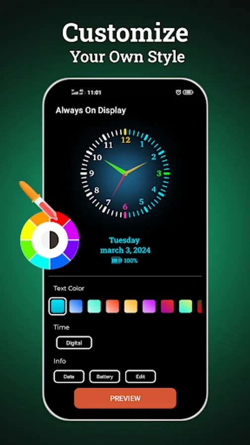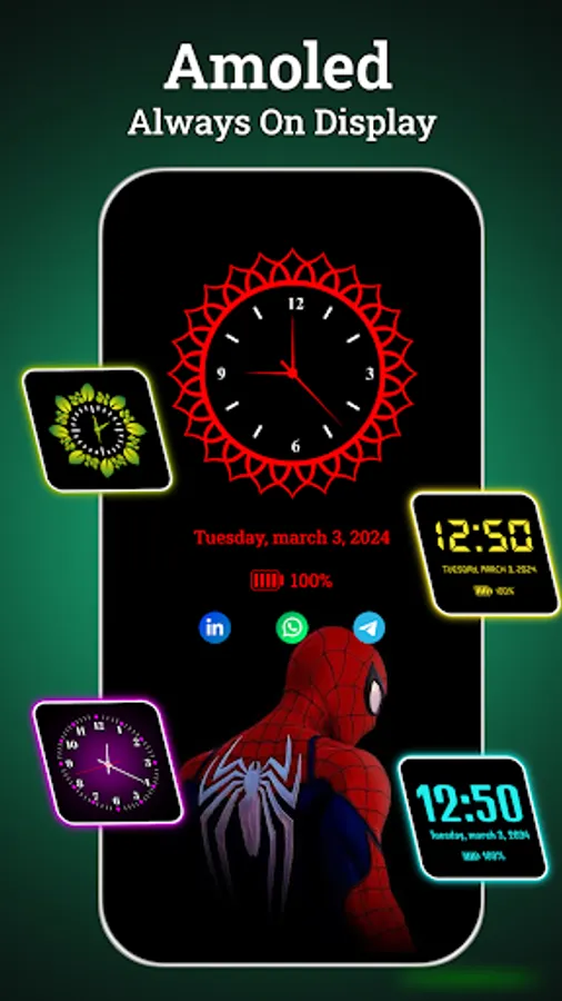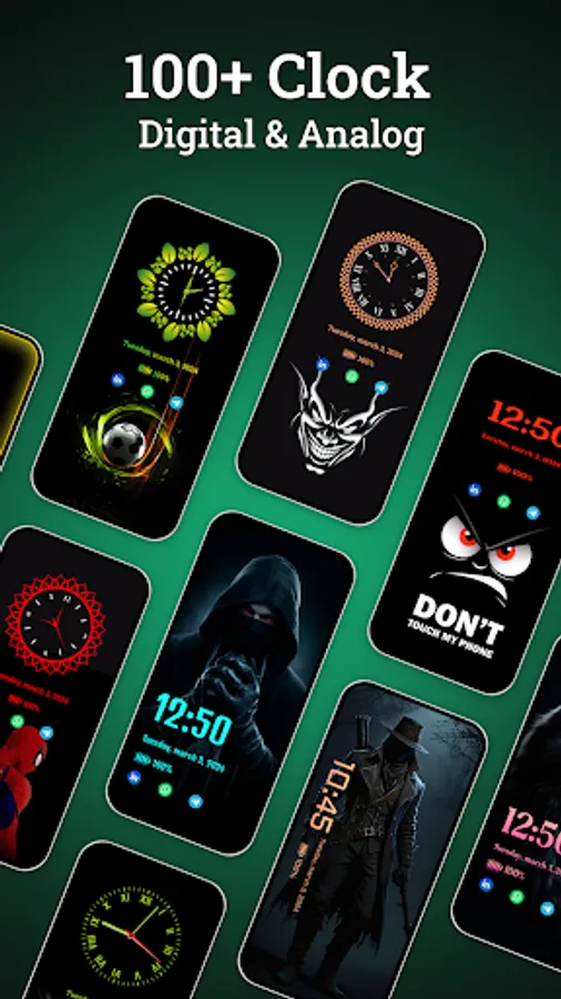 We have introduced many unique features like AOD AMOLED analog digital clock and custom digital clock design and many display options. Always get access to the edge clocks, picture clocks, and emoji clocks, and with the help of that customize wallpapers, themes, fonts, and colors.