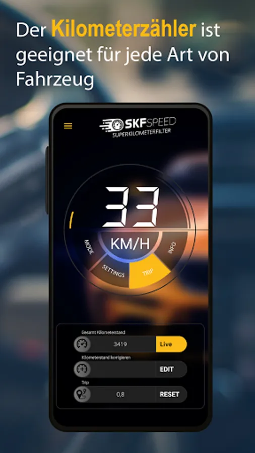 The free SKF Speed app for your iPhone offers many useful functions for your car in the DEMO VERSION. It has a simple and minimalist design, which makes it particularly easy to use. The SKF Speed App is suitable for every vehicle.