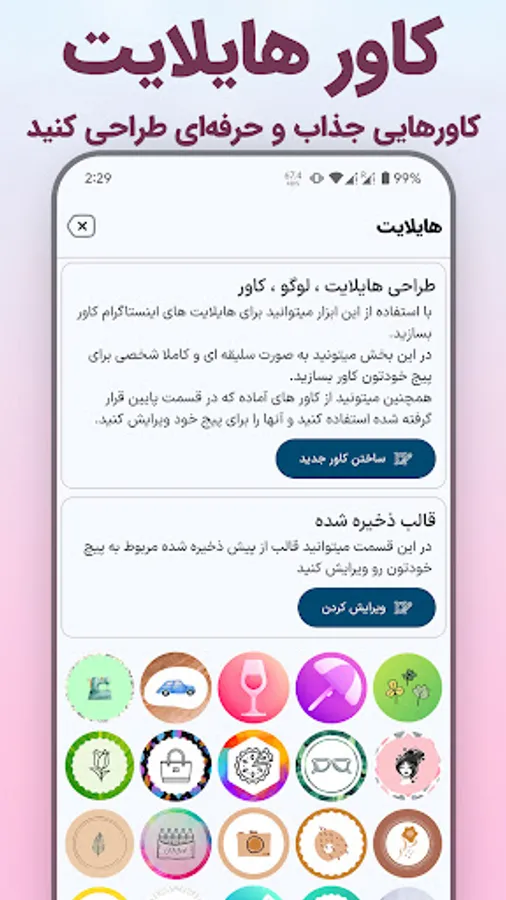 Professional Text Design: Use beautiful Persian and English fonts (like Nastaliq and iPhone fonts) to create eye-catching text.