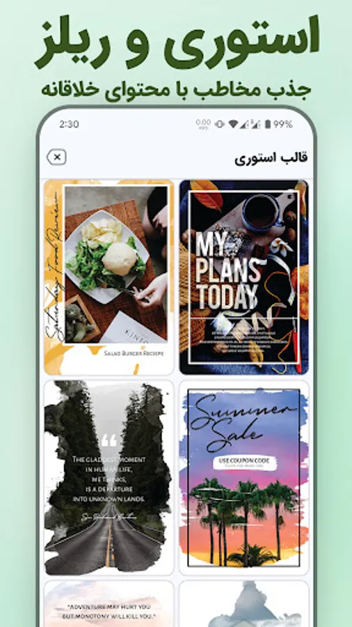 Ready-Made Templates: Choose from unique templates for posts and stories.