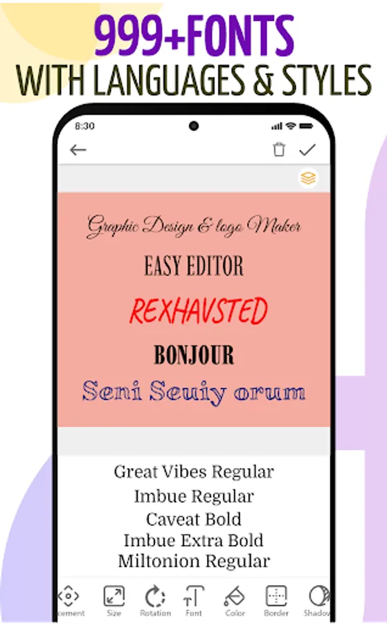 • Customize your logo, flyer, banner, by adding text art with multiple fonts