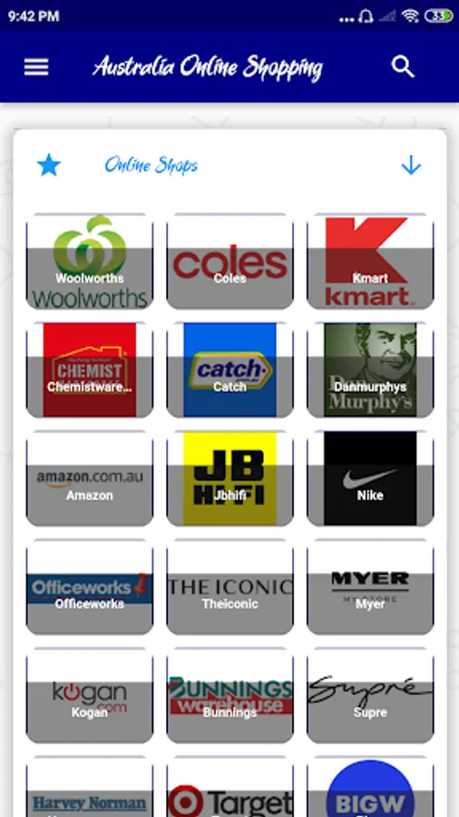 Online Shopping Australia - Includes all major online shopping websites in Australia like Amazon, Woolworths, Kmart, Catch, Danmurphys, Jbhifi, Officeworks, Nike, Target, Kogan, Harveynorman, Myer, Davidjones, etc