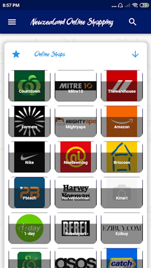 Online Shopping Newzealand - Includes all major online shopping websites in Newzealand like Amazon, Countdown, Thewarehouse, Farmers, Nike, Noelleeming, Briscoes, Harveynorman, Kmart, Rebelsport, Asos, Catch, Theiconic, etc
