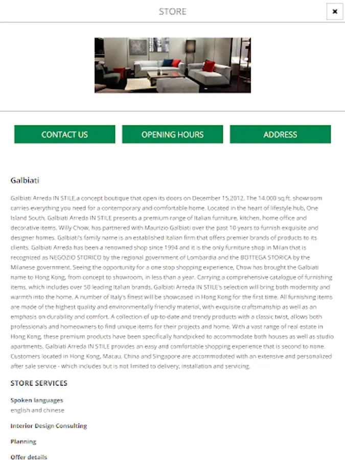 With this app for Smartphone and Tablet you can take the Galbiati Arreda In Stile catalogue wherever you go. Galbiati Arreda In Stile, your trusted interior design store in Hong Kong.