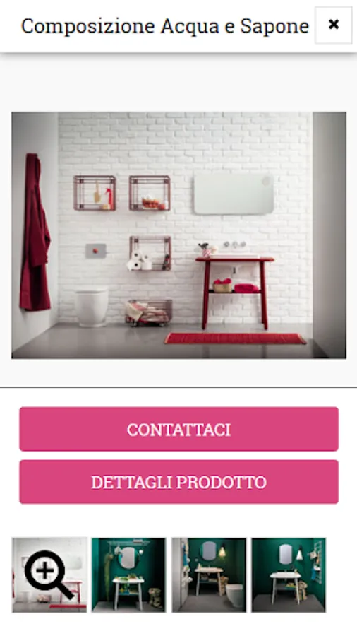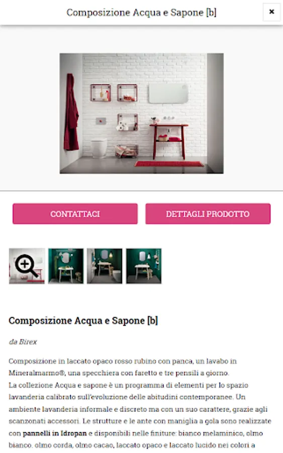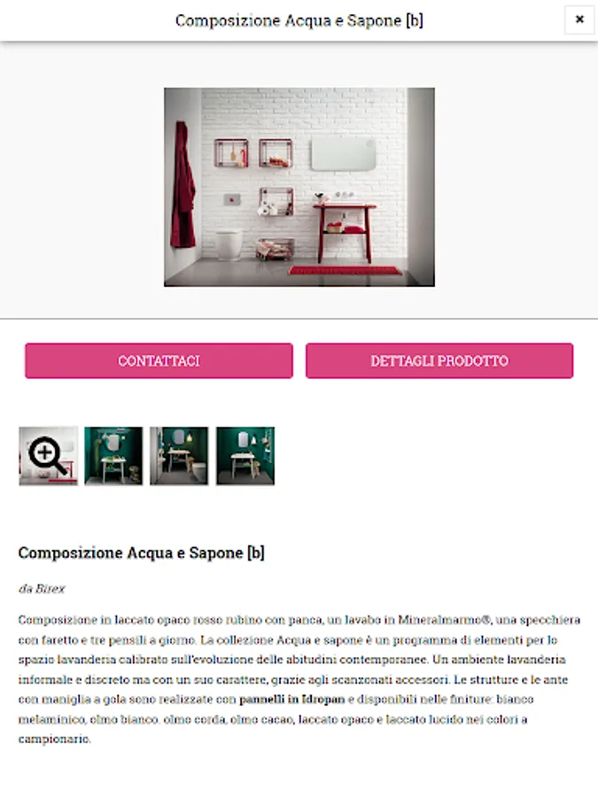 Inside the card product is all useful details to guide you in your choice: name and product description, sizes, materials and features. With the photo gallery watch the furnishing product you selected in detail.
