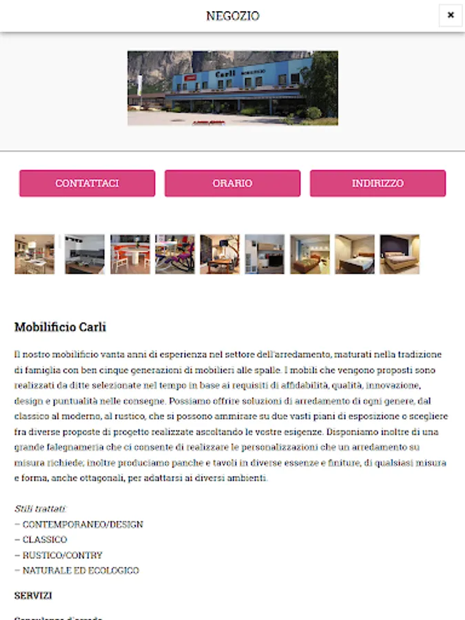 This application allows you to take with you on your Smartphone or Tablet, the catalog of the furniture Furniture Carli, your retail store design in Mezzocorona (Trento).