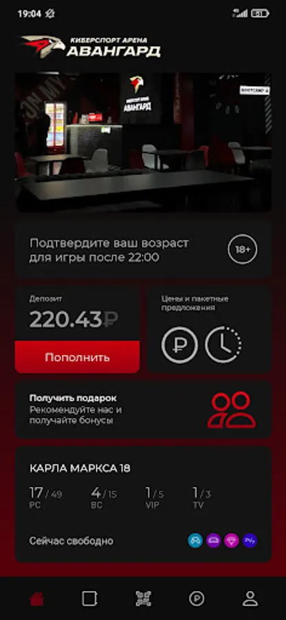 Application for the computer club "Esports Arena Avangard".