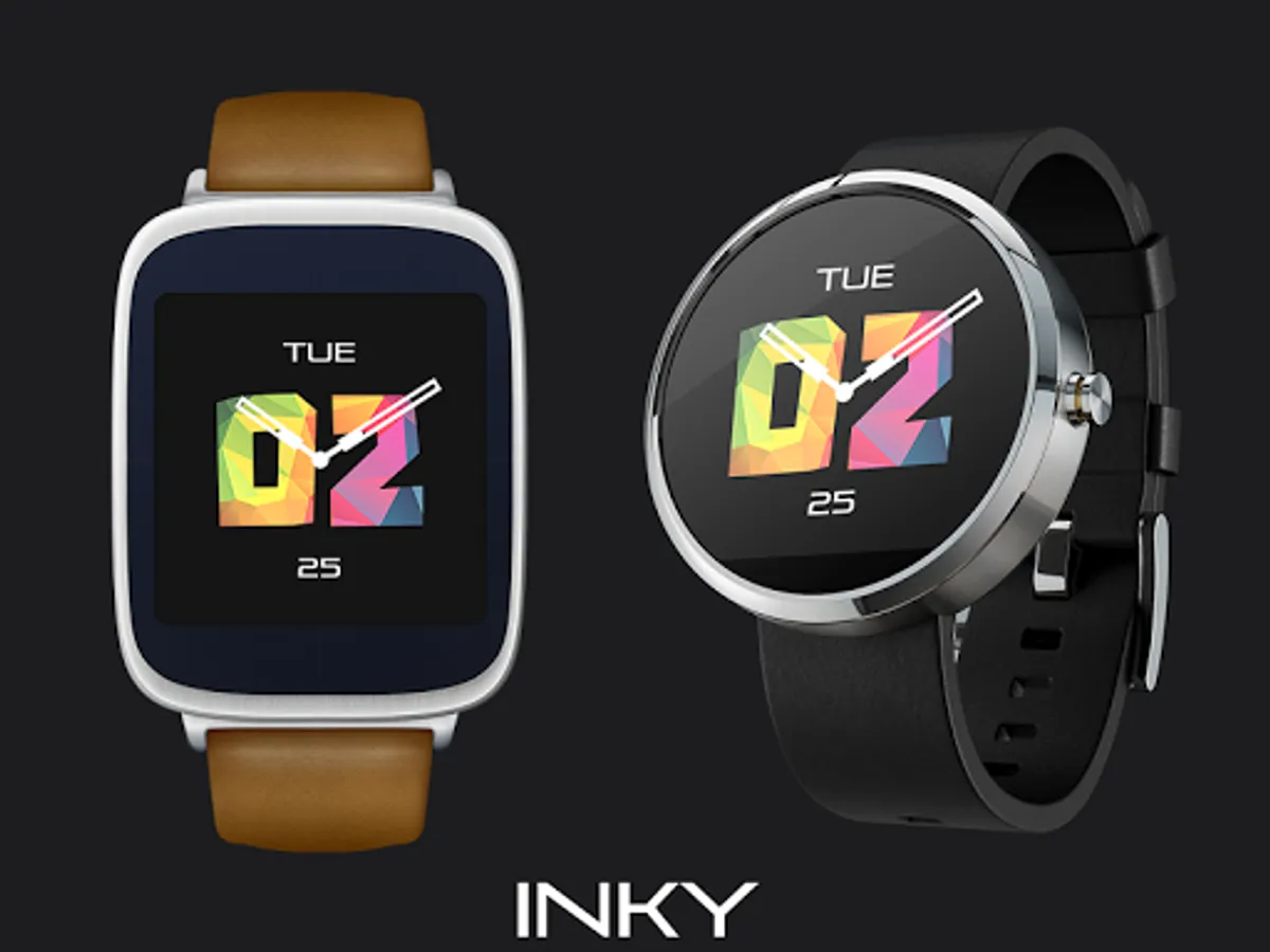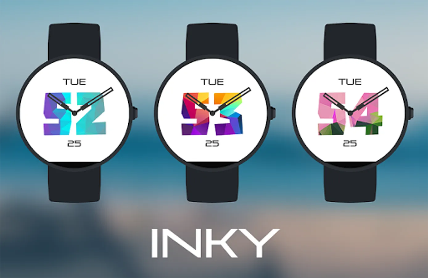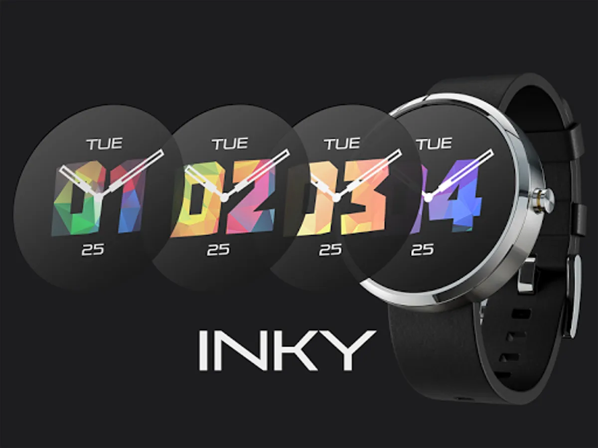 INKY is a simple and minimal watch face that has a predefined preset of colorful tessellated triangles for each second that are displayed in center along with white colored hands and texts for day and date. This set up will definitely make you turn your wrist so often ;).