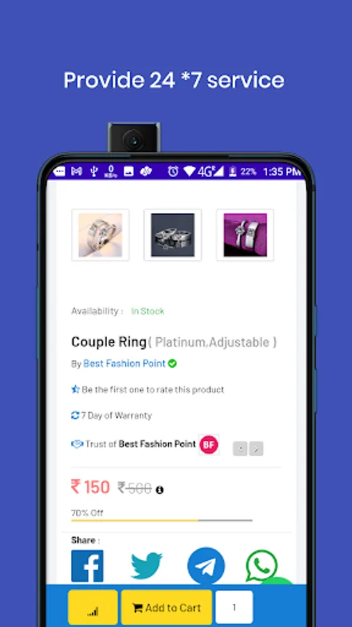 Best Fashion Point is new start up for selling and purchasing variety of products under one app. Our thought behind the start up is to make the customers experience hustle free. We assure our clients about the product and want to say them that they will never be cheated from our side. As a young start up we will provide many offers to them. We guaranteed that the experience of the customers will always be hustle free. We provide 24*7 service.