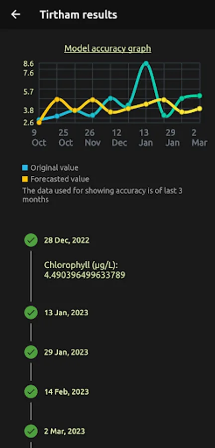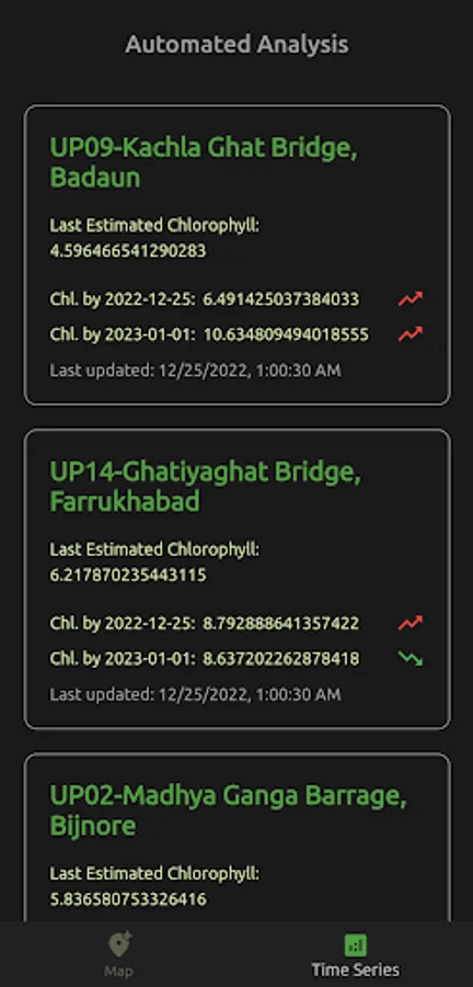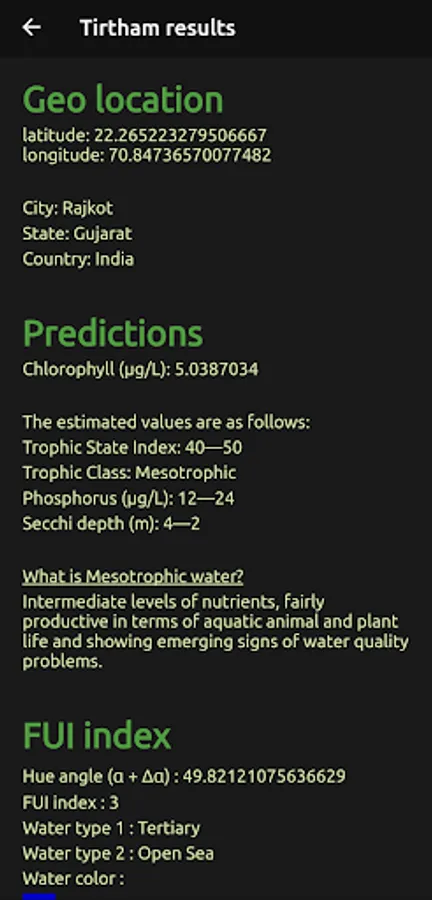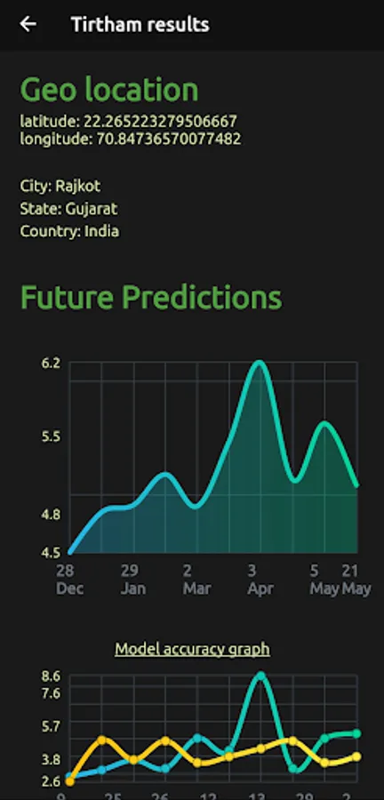 The app will predict the water quality of any fresh water body using remote sensing satellite images. You may pinpoint the position of the body of water, and the software will provide statistics for you. We also provide future analysis statistical data for up to 6 months. Automated alert system has been placed for river ganga at 10 different locations. Notifications will be popped whenever the chlorophyll level increases. The automated system works every 7 days.