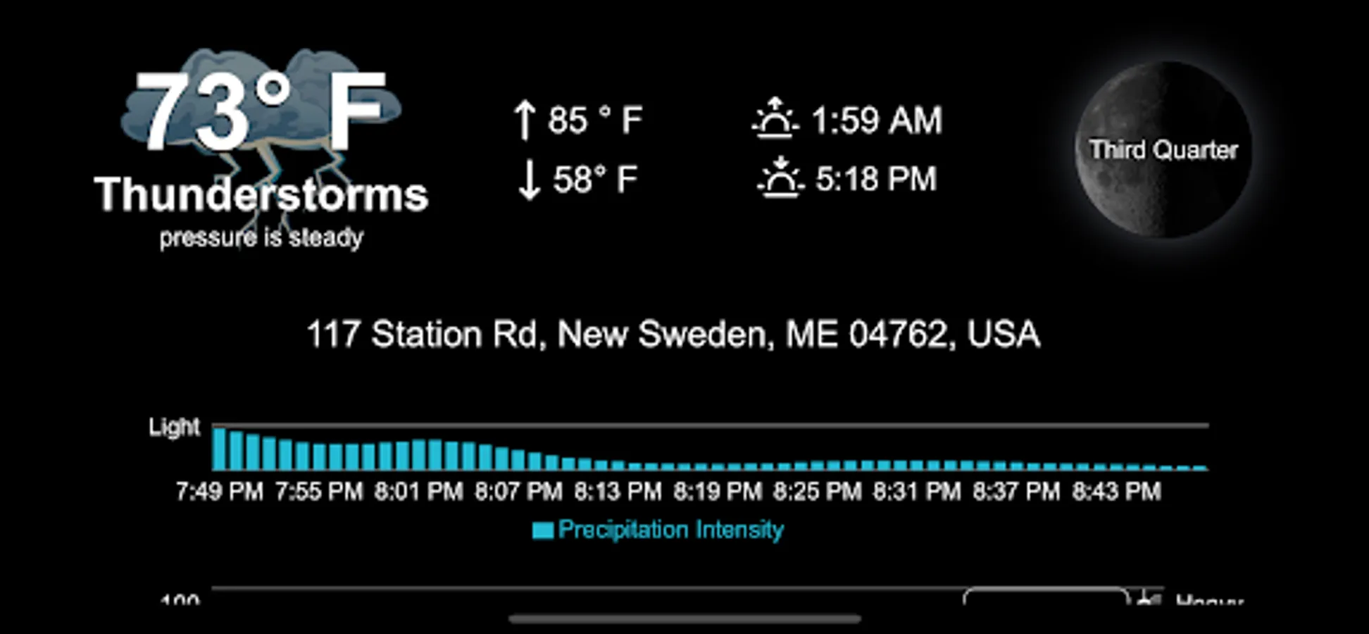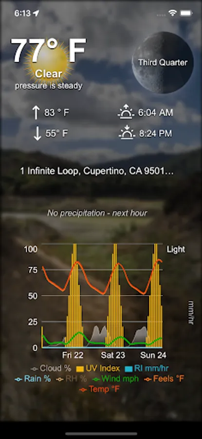 - Apple Weatherkit, current, next hour, and 10 day forecast