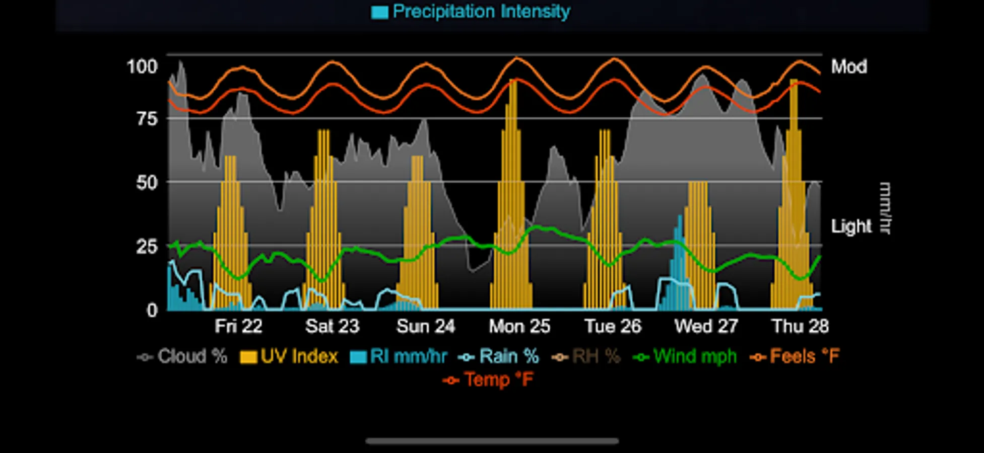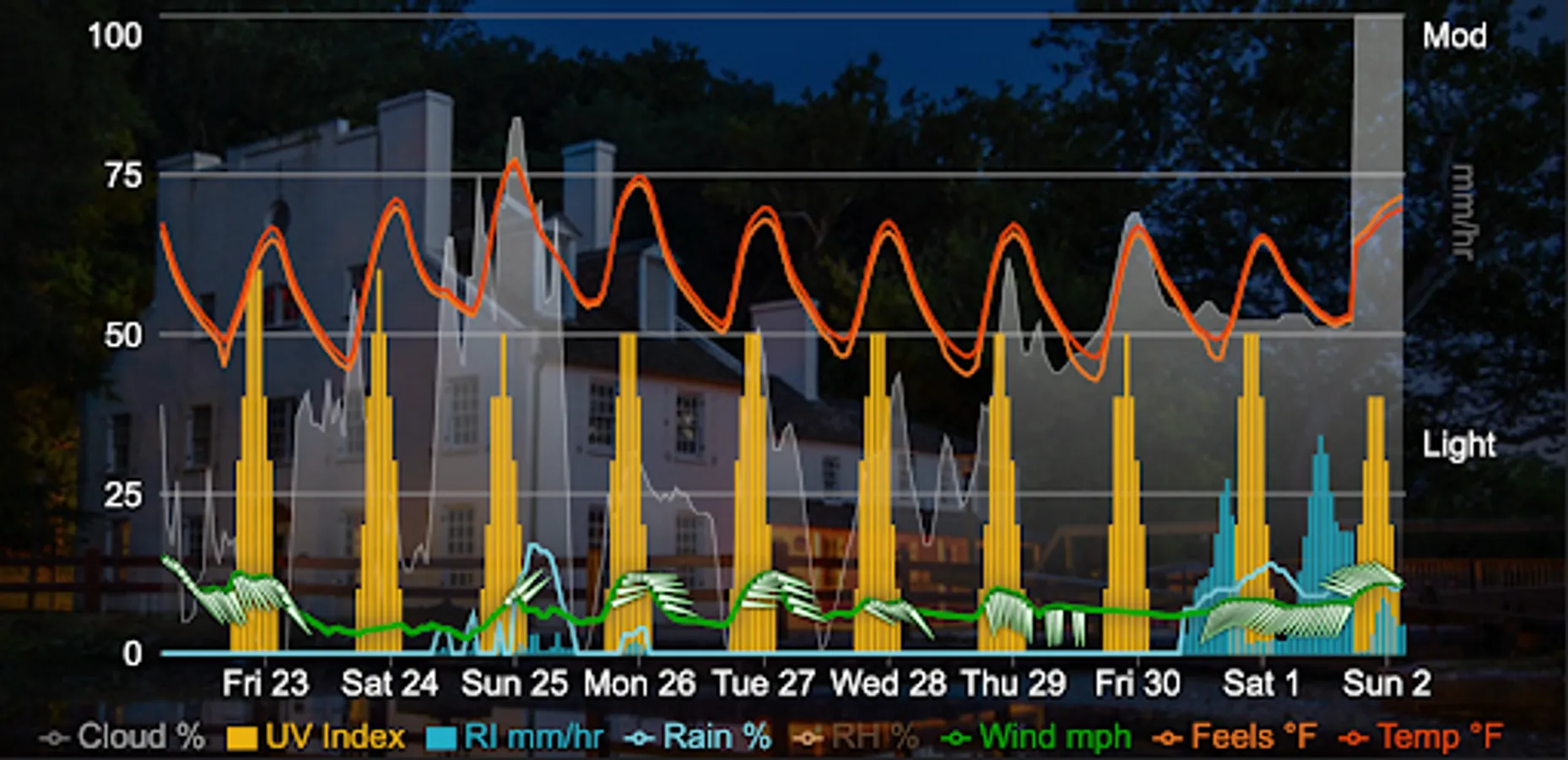 - Weather values charted to give a quick summary of weather trends