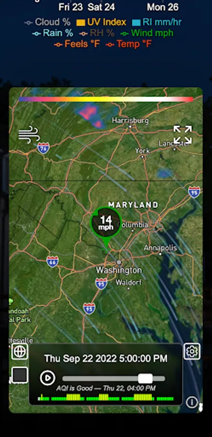 - MPH or KPH Wind speed
