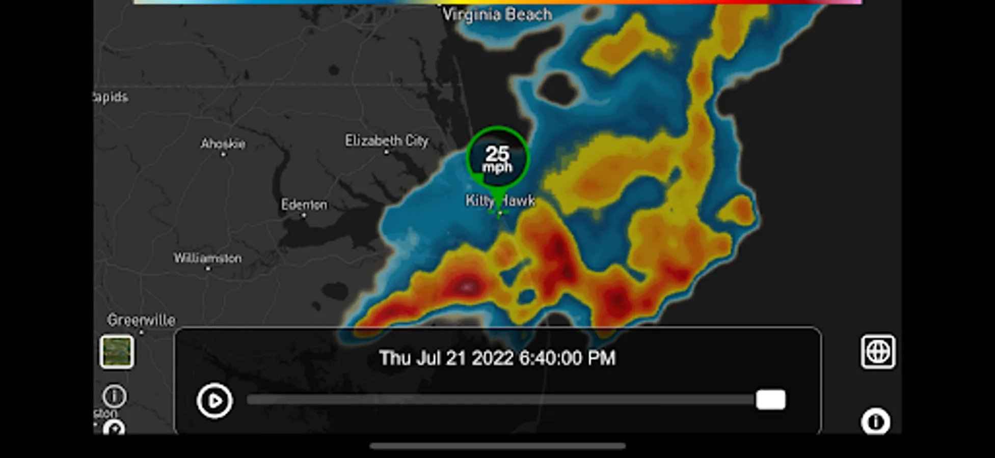 - Wind speed shown as place marker icon on map with wind direction dial