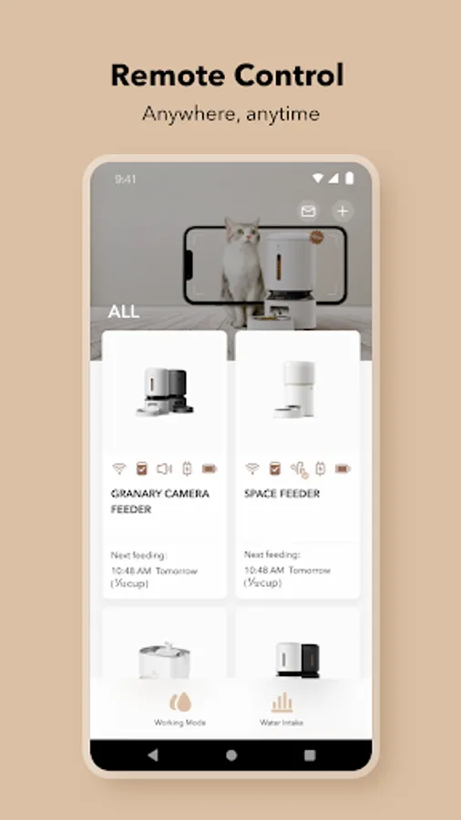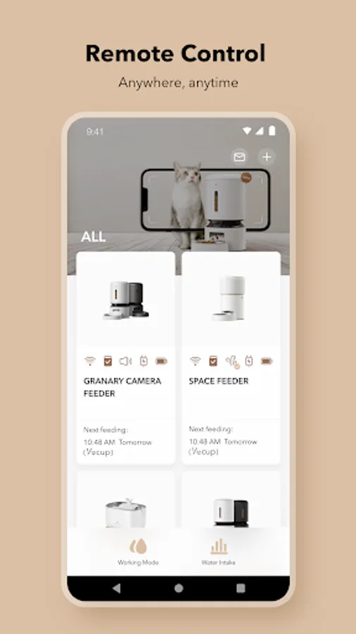 1.Remotely control your water fountain and feeder from anywhere, anytime, and adjust their working modes.