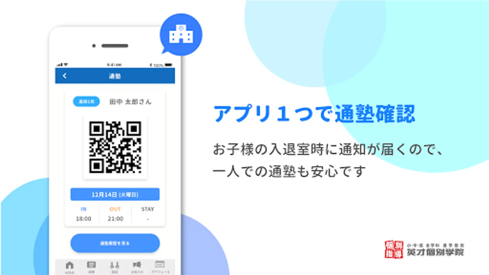 今までの通塾メールをアプリのプッシュ通知で配信します。いつ塾に来て、いつ塾から出たのかが保護者様に通知されるので安心です。