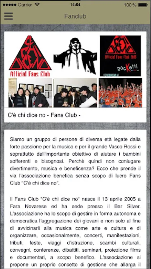 Some say no Fans Club, was formed by a group of people of different ages linked with a strong passion for music and for the great Vasco Rossi and especially by the important goal of helping the suffering and needy children. So why not combine fun, music and charity? That kicks off the charity nonprofit Fans Club "Some say no." The Fans Club "Some say no" was born April 13, 2005 in Fara Novarese and is based at the Silver Bar. The association aims to help people independently and democratic form aggregation of young people and not only in order to bring them closer to music as art and culture and to organize, occasionally, concerts, events, tributes, parties, school trips, cultural exchanges, conferences, lectures, debates, seminars, projection of films and documentaries, for charity. The association offers its own management concept that enlarges the meaning of "association" not only as a meeting place for young people, but also as a center of stimulus and aid to socialization and cultural exchange