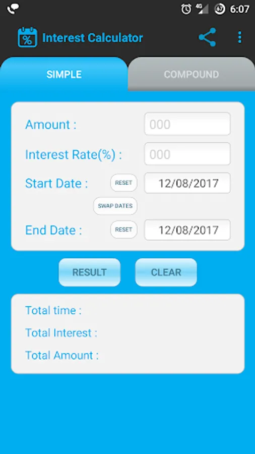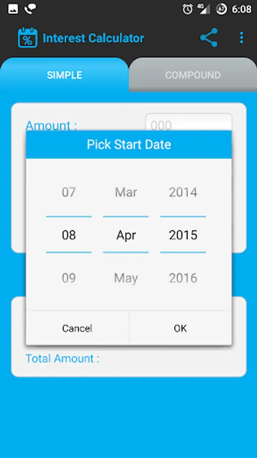 This interest calculator app has very customizable features. You can set interest format, calendar type, date format etc. you can see these features in setting menu.