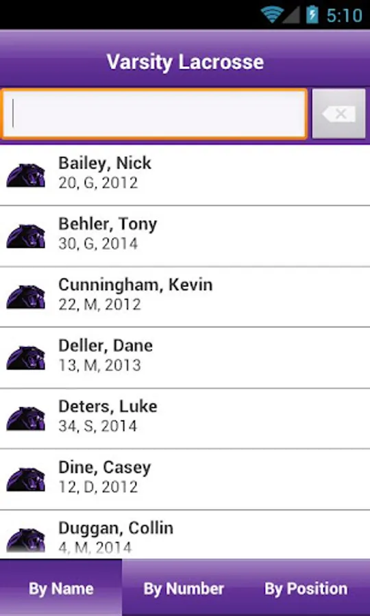 Team rosters offer an easily accessible view complete with searching and sorting ability.